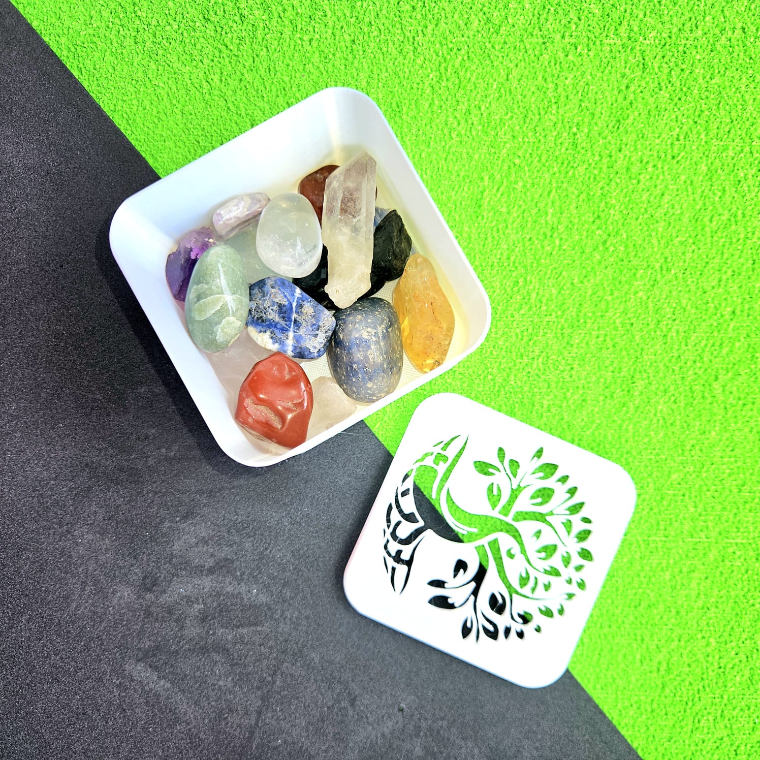 Eleve a energia do seu altar ou espaço de cura com este conjunto exclusivo. A Caixa Árvore da Vida apresenta um design vazado delicado na tampa, simbolizando o crescimento espiritual e a interconexão de todos os seres.